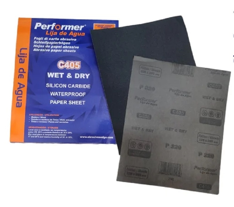 GSM 120 GSM Usage/Application Wood finishing & furniture Walls, paint, and coating removal Automotive bodywork & metal surface p Size 9 X 11 Color Dark Grey Number Of Sheets Per Pack 50 Performer C405 Wet & Dry Silicon Carbide Waterproof Paper Sheets. Designed with superior abrasive technology, these sheets deliver excellent sanding performance, longer durability, and smooth finishing on multiple surfaces. Key Features: Made with Premium Silicon Carbide Grains Suitable for Wet & Dry applications Available in multiple grit sizes for all sanding needs